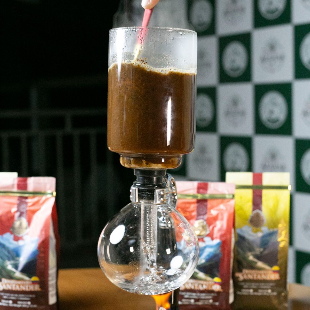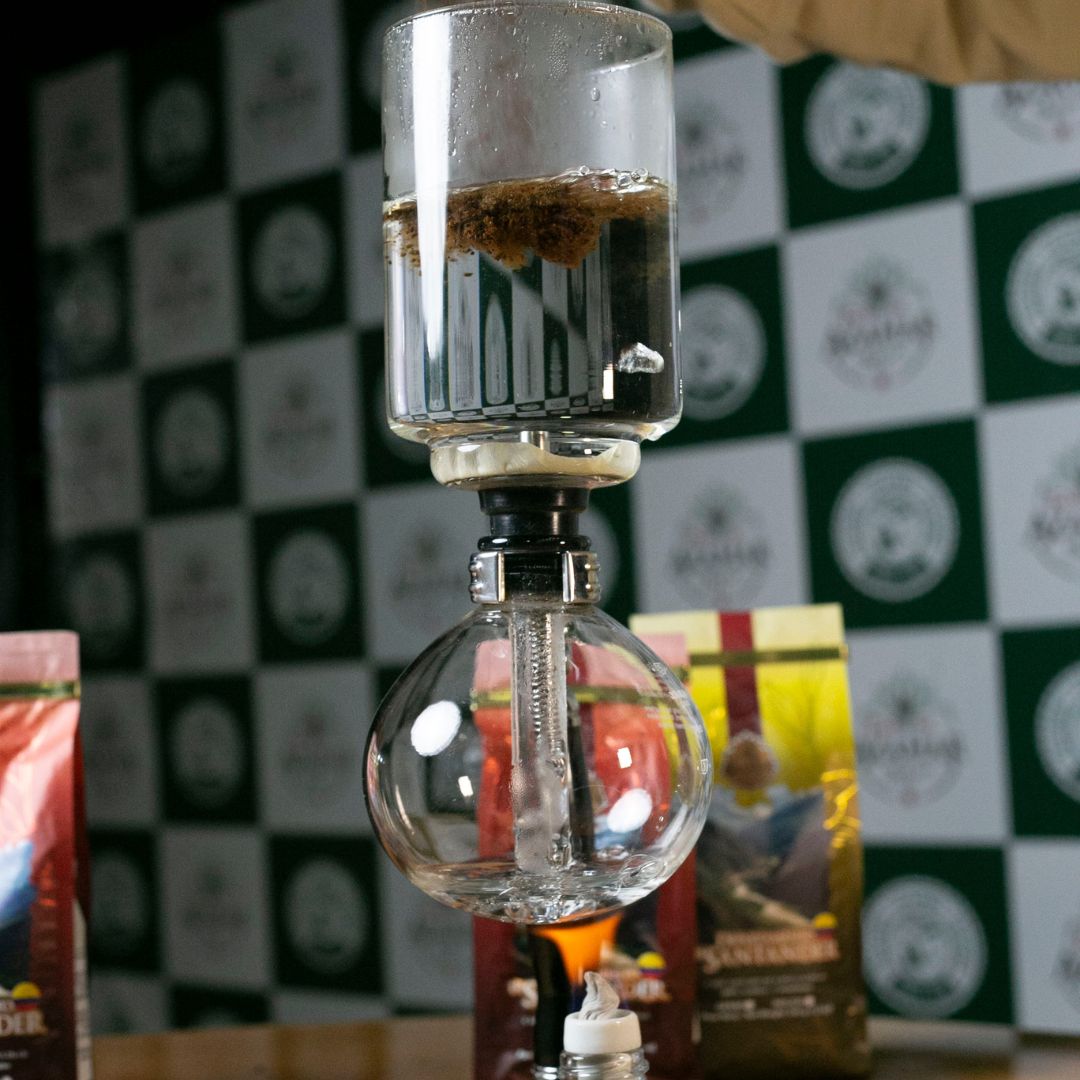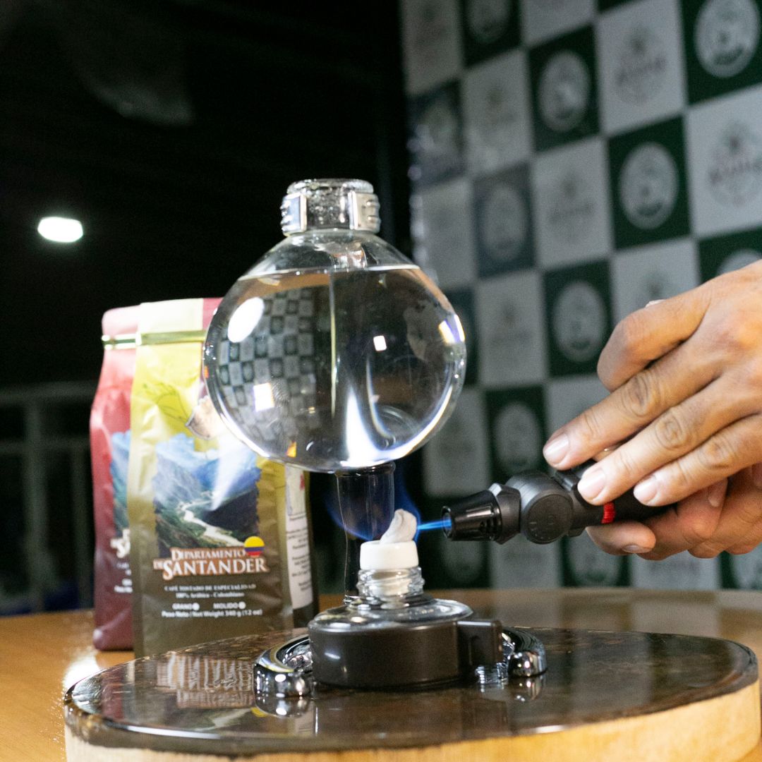 El proceso de subir y bajar el agua es un espectáculo visual, combinando ciencia y arte en la preparación del café.